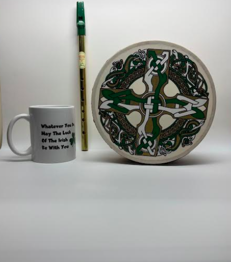 Irish Gift Set: Irish Tin Whistle, 8" Celtic Cross Bodhran & Irish Novelty Mug